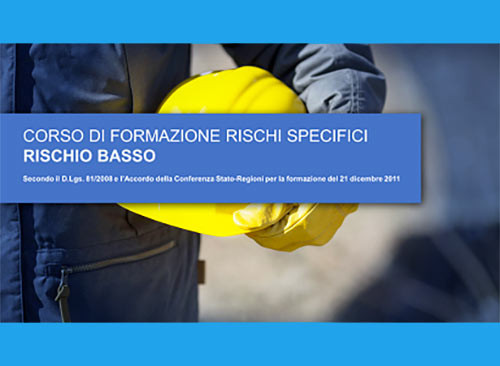 Obiettivo: il corso si articola in 14 argomenti suddivisi in 4 parti: P1 - Rischi meccanici e attrezzature, Rischi elettrici, Cadute dall’alto, P2 - Rischi chimici, Nebbie, oli, fumi e polveri, Etichettatura, Rischi biologici, Rumore, Vibrazioni, Radiazioni, Microclima e illuminazione, Videoterminali, P3 - DPI e organizzazione del lavoro, Ambienti di lavoro, Stress lavoro-correlato, Movimentazione manuale dei carichi, Movimentazione merci, P4 - Segnaletica, Procedure di sicurezza, Procedure di esodo, incendi ed emergenze, Procedure organizzative per il primo soccorso, Incidenti e infortuni mancati.